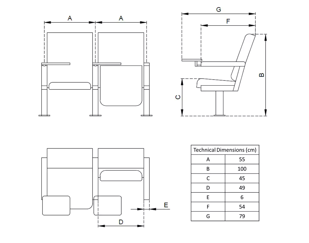 This reclined seat provides ergonomic support with a padded seat base for long-term comfort. Flame-retardant fabrics ensure it meets safety requirements for corporate settings.
